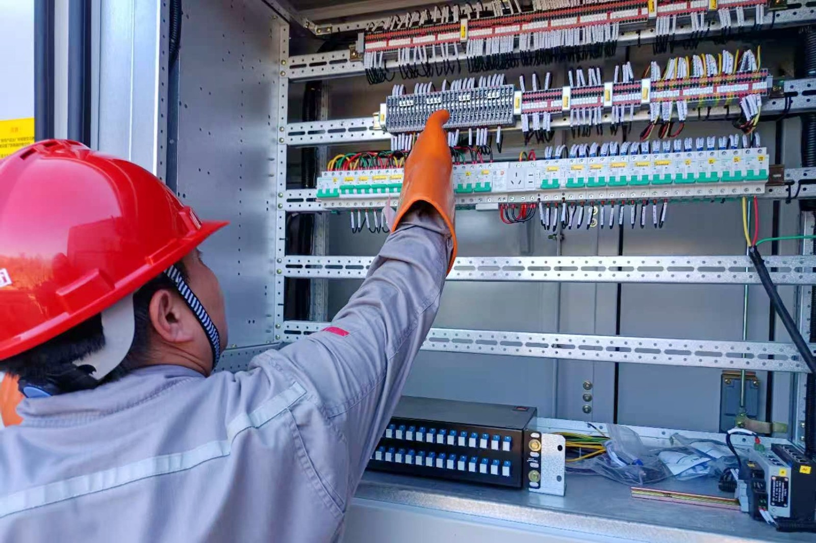 圖為項(xiàng)目人員正在進(jìn)行送電前檢查