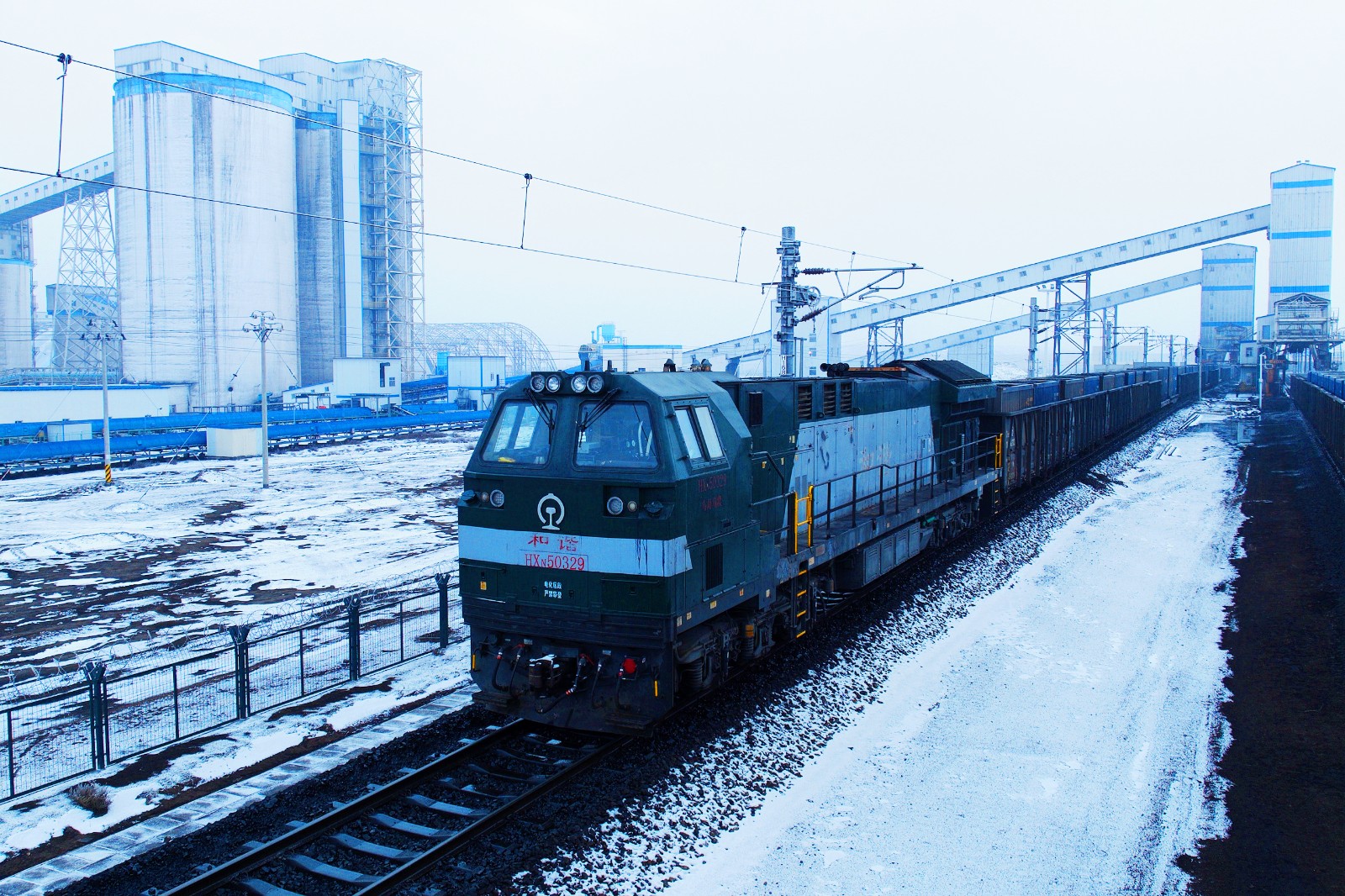 滿載煤炭的保供專列駛出紅沙泉礦區(qū)鐵路環(huán)線。