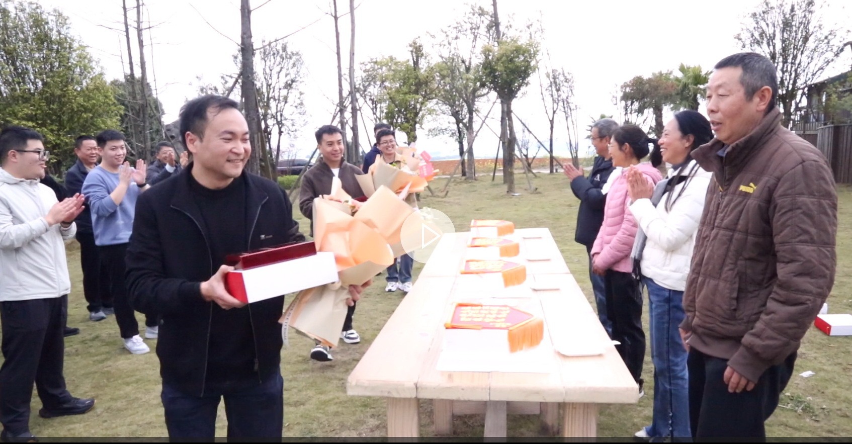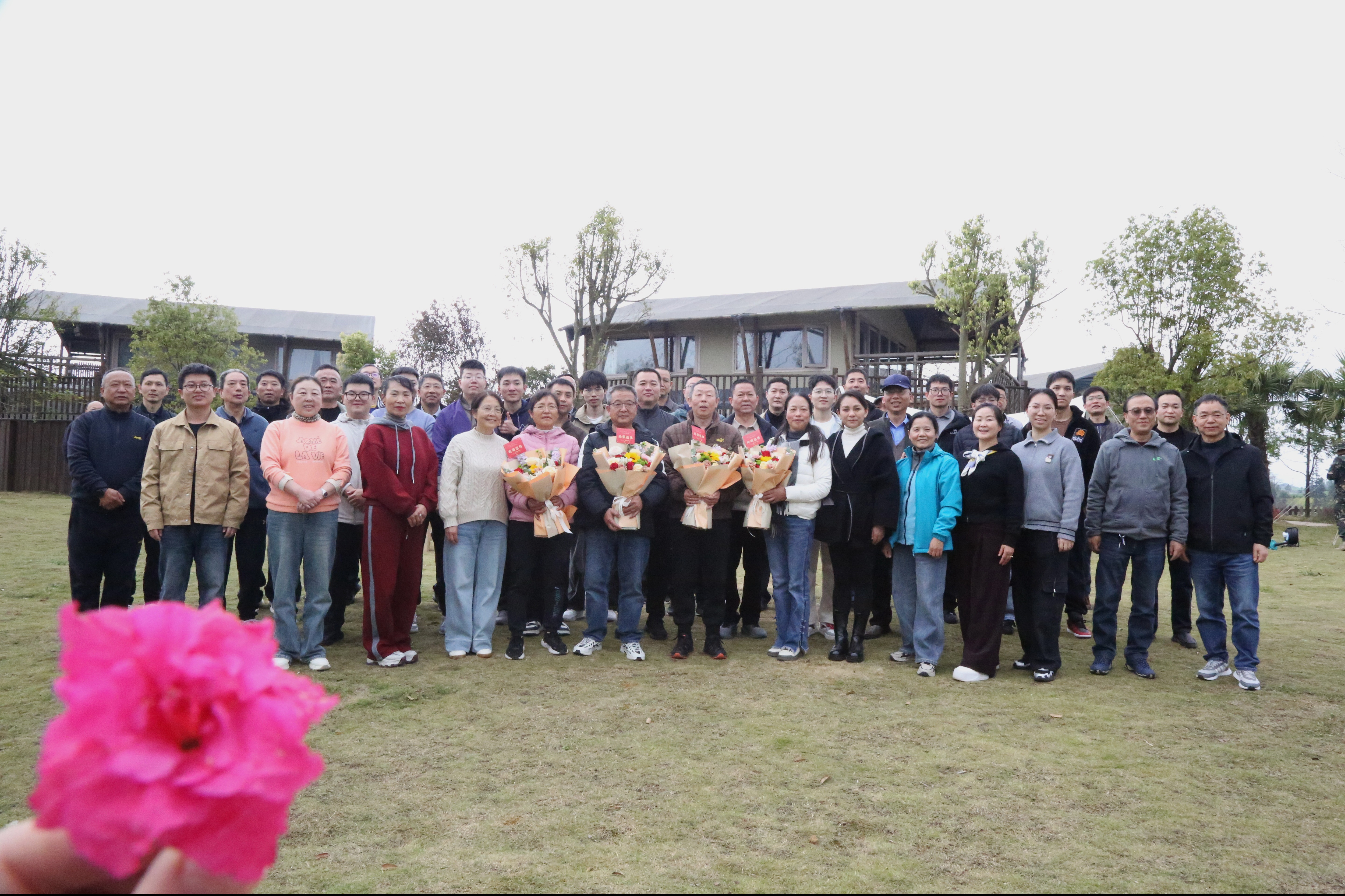 4名青年員工手捧鮮花和退休紀(jì)念章,向光榮退休的同志獻(xiàn)上真摯祝福與崇高敬意,致敬他們多年來扎根崗位、默默耕耘、無私奉獻(xiàn)的歲月。
