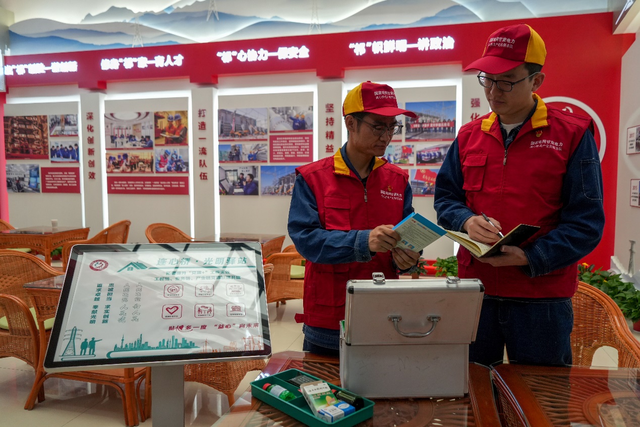 “創(chuàng)可貼、酒精濕巾、驅(qū)蚊水、防暑降溫貼需要添加,碘伏、云南白藥、感冒靈、丹參滴丸、速效救心丸充足,不用添加?!痹凇斑B心橋·光明驛站”,黨員服務(wù)隊(duì)隊(duì)員正在更新應(yīng)急小藥箱,提供常用藥品、消毒用品、快捷充電等臨時(shí)服務(wù),解決檢修人員后顧之憂。他們還在設(shè)備區(qū)入口處設(shè)置6臺(tái)飲水機(jī),方便參檢人員隨時(shí)補(bǔ)充水分,在驕陽(yáng)似火的正午休息時(shí),送上冰涼解暑的杏皮水、汽水,為年檢人員送去關(guān)愛(ài)和服務(wù)。