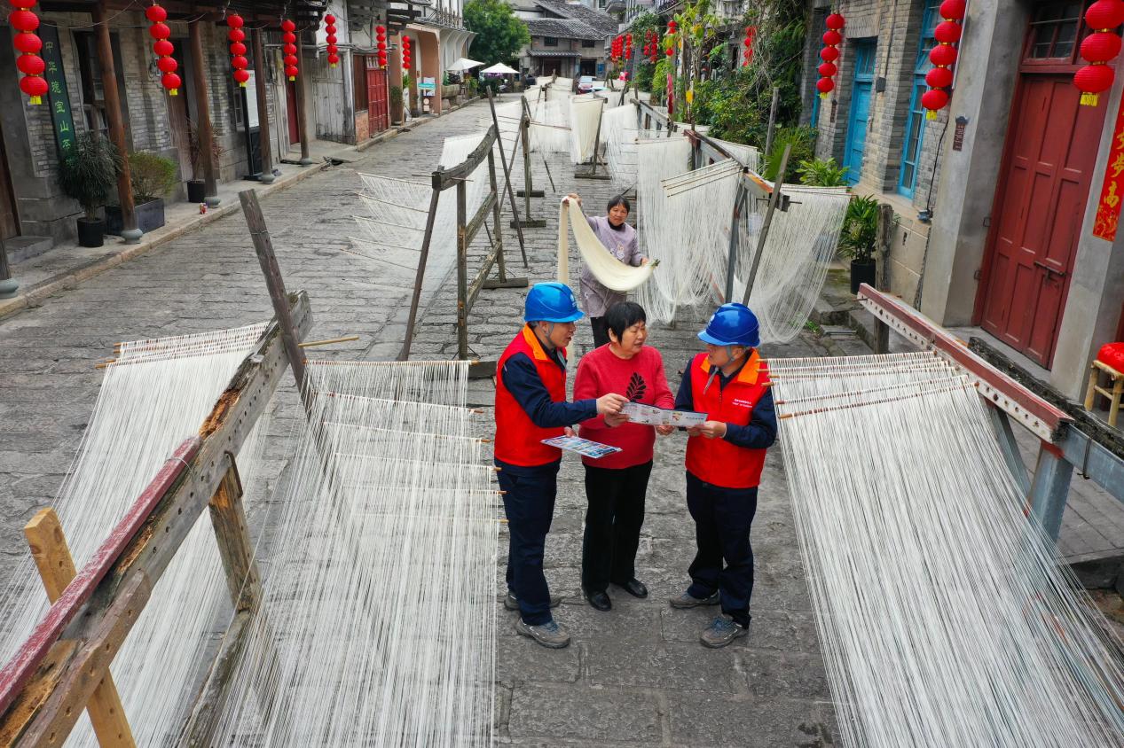 國(guó)網(wǎng)福州供電公司永泰縣嵩口古鎮(zhèn)片區(qū)網(wǎng)格協(xié)管黨員向客戶講解安全用電知識(shí)。 陳德鈞攝