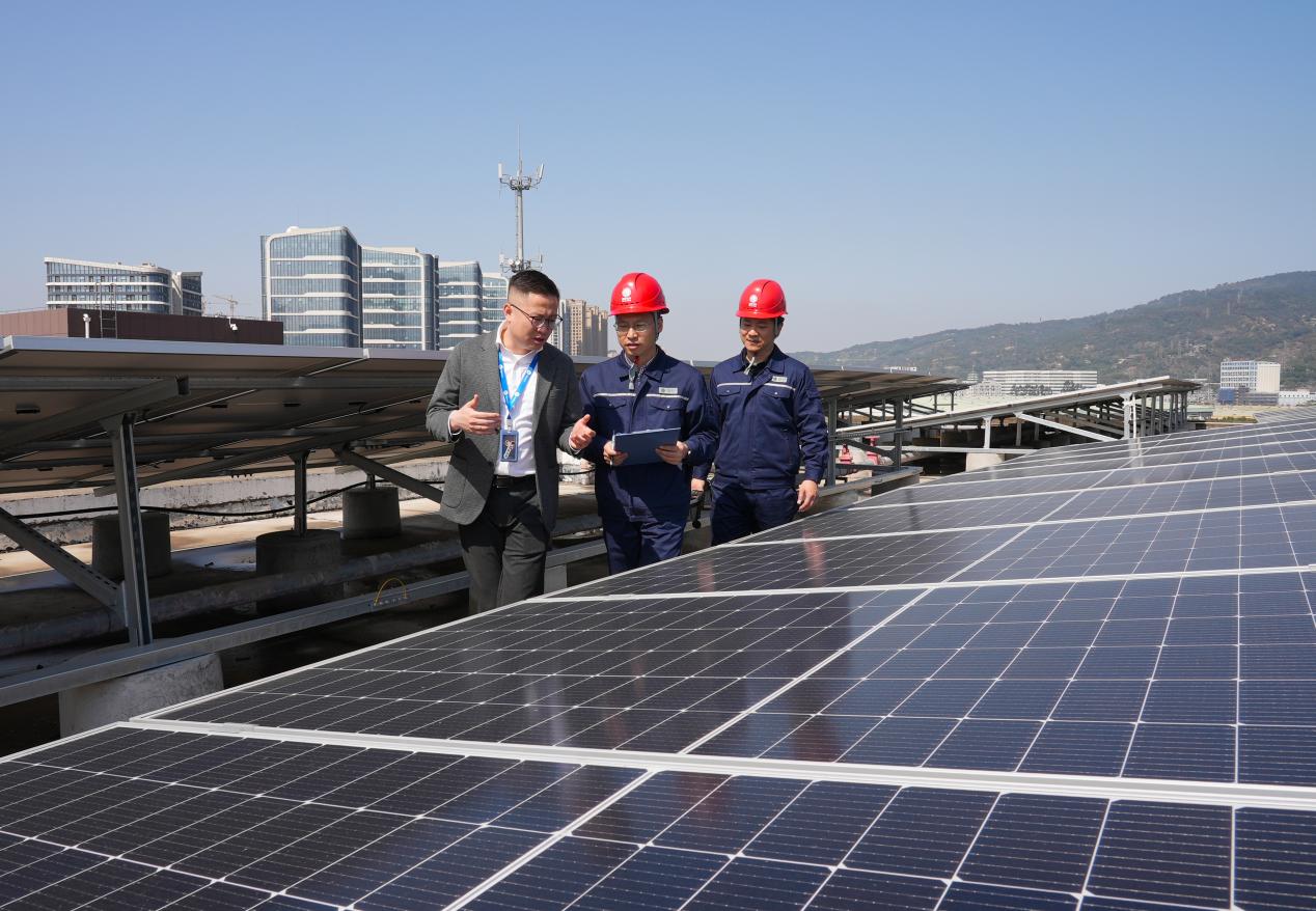國(guó)網(wǎng)福州供電公司工作人員對(duì)企業(yè)的屋頂光伏微電網(wǎng)系統(tǒng)進(jìn)行巡查。 陳德鈞 攝
