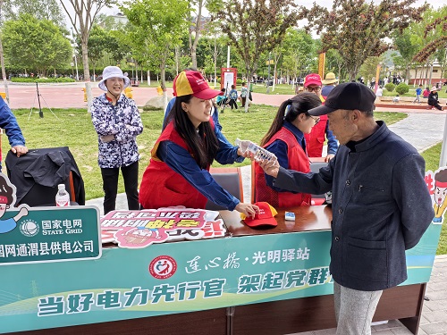在實(shí)踐課堂中,組織國(guó)家電網(wǎng)甘肅電力(薯都之光·通渭)連心橋共產(chǎn)黨員服務(wù)隊(duì)主動(dòng)延伸服務(wù),在考點(diǎn)外設(shè)立“連心橋·光明驛站”,為考生和家長(zhǎng)提供飲水、防暑藥品、應(yīng)急文具等便民服務(wù),并協(xié)助維持考場(chǎng)外秩序,用實(shí)際行動(dòng)傳遞溫暖。