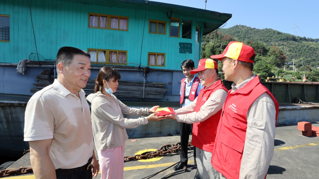 10月1日清晨,閩江水口航運(yùn)樞紐待閘停泊區(qū)微風(fēng)輕拂,一面面嶄新的五星紅旗在船舷邊獵獵作響。由國網(wǎng)福建電力(水口閩江航運(yùn))“雙滿意”共產(chǎn)黨員服務(wù)隊(duì)聯(lián)合福州市地海局開展的“迎國慶?中國紅”黨建“三級聯(lián)創(chuàng)”主題活動(dòng)在此溫情啟幕。隊(duì)員們以贈(zèng)旗傳情、安全護(hù)航、規(guī)程宣講等務(wù)實(shí)舉措,讓“中國紅”在閩江水域躍動(dòng)成溫暖的愛國圖景,用實(shí)際行動(dòng)詮釋“人民電業(yè)為人民”的企業(yè)宗旨。
