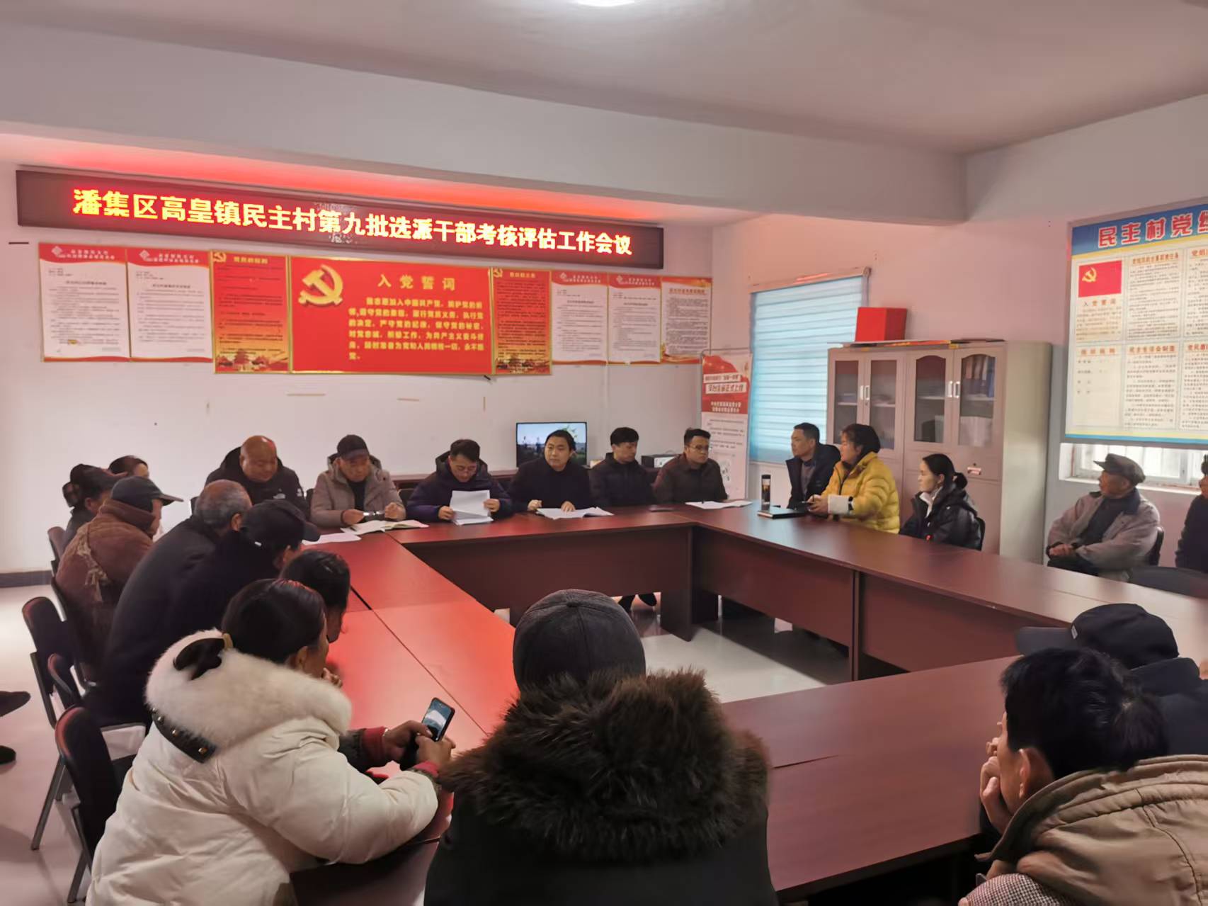 考核采取工作述職、意見(jiàn)征求與通氣、滿意度測(cè)評(píng)、個(gè)別談話、資料查閱、實(shí)地查看、“一票否優(yōu)”等相結(jié)合的方式進(jìn)行,主要考核駐村工作隊(duì)履行職責(zé)、作用發(fā)揮、幫扶成效、群眾評(píng)價(jià)等多方面的情況。考核會(huì)上,大唐田家庵發(fā)電分公司駐村第一書(shū)記圍繞宣傳黨的政策、建強(qiáng)村黨組織、推進(jìn)強(qiáng)村富民、提升治理水平、為民辦事服務(wù)“五項(xiàng)職責(zé)”進(jìn)行現(xiàn)場(chǎng)述職,兩名駐村隊(duì)員書(shū)面述職。參會(huì)人員根據(jù)駐村干部現(xiàn)實(shí)表現(xiàn)進(jìn)行滿意度測(cè)評(píng),并與部分村“兩委”干部、監(jiān)測(cè)戶等進(jìn)行個(gè)別談話。隨后,考察組一行仔細(xì)查閱了駐村工作隊(duì)履職臺(tái)賬,包括駐村工作日志、簽到表等相關(guān)資料,并按照“選派干部量化考核評(píng)分細(xì)則”中組織建設(shè)、鞏固拓展脫貧攻堅(jiān)成果同鄉(xiāng)村振興有效銜接、集體經(jīng)濟(jì)發(fā)展情況、提升治理水平、為民辦事服務(wù)、協(xié)調(diào)落實(shí)結(jié)對(duì)幫扶、黨建引領(lǐng)信用村建設(shè)、駐村工作隊(duì)加分等八個(gè)方面二十項(xiàng)進(jìn)行評(píng)分,確保駐村工作考準(zhǔn)、考實(shí)、考出成效。