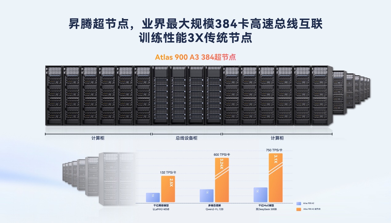 昇騰超節(jié)點架構以突破性創(chuàng)新打破集群互聯(lián)瓶頸,通過技術革新實現(xiàn)節(jié)點間高效協(xié)同,讓集群運行如同一臺強大計算機,大幅提升整體計算效率。其構建業(yè)界最大規(guī)模384卡高速總線互聯(lián)體系,相比傳統(tǒng)節(jié)點,訓練性能實現(xiàn)3倍飛躍,以強勁算力支撐大規(guī)模AI任務快速推進。同時,超節(jié)點架構深度適配MoE,充分釋放MoE模型潛力,為模型訓練與推理提供高效支持,使昇騰成為MoE模型開發(fā)與應用的最優(yōu)選擇,在AI計算領域樹立新標桿。