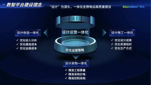 作為中國(guó)數(shù)字工程領(lǐng)域近30年深耕者,廣聯(lián)達(dá)帶著“數(shù)字技術(shù)”“工程建設(shè)基因”及“AI能力”,賦能新能源賽道,打造面向新能源電站設(shè)計(jì)、建造、運(yùn)維一體化的數(shù)智平臺(tái)。廣聯(lián)達(dá)的數(shù)智平臺(tái)建設(shè),以“設(shè)計(jì)”為源頭,一體化支撐高質(zhì)量建設(shè)為指導(dǎo)思想,通過(guò)AI對(duì)傳統(tǒng)數(shù)字化技術(shù)加持,實(shí)現(xiàn)四個(gè)一體化,支撐電站高質(zhì)量建設(shè)和高收益的目標(biāo)。