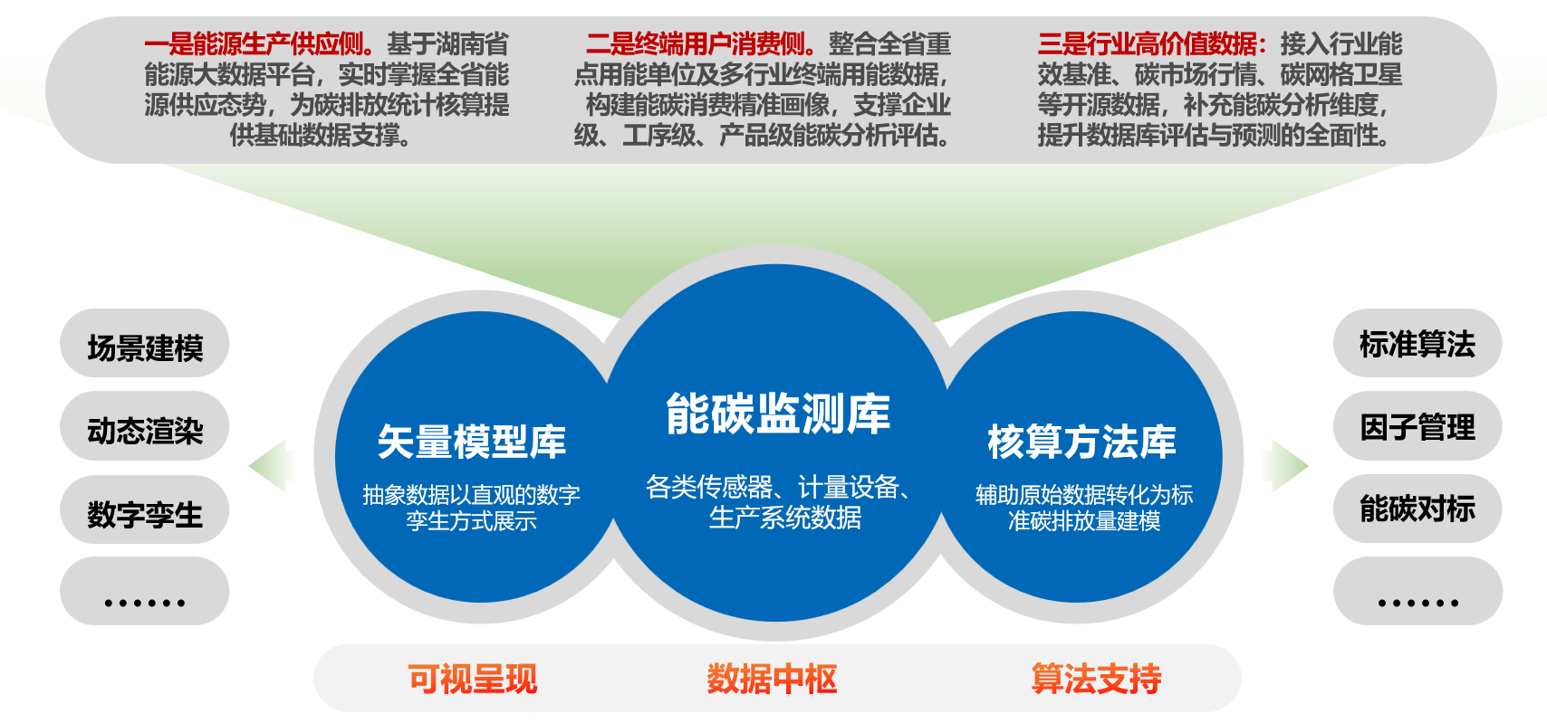 為加快推進(jìn)全省雙碳工作部署,湖南省積極探索數(shù)字化手段在雙碳工作中的深度應(yīng)用,圍繞推動(dòng)碳達(dá)峰碳中和“1+1+N”政策落地見(jiàn)效,積極構(gòu)建全省統(tǒng)一的雙碳大數(shù)據(jù)平臺(tái)。湖南省雙碳綜合服務(wù)平臺(tái)將充分利用大數(shù)據(jù)、人工智能等新興數(shù)智化技術(shù),重點(diǎn)圍繞雙碳綜合治理和企業(yè)低碳發(fā)展兩大業(yè)務(wù)場(chǎng)景,著力構(gòu)建碳監(jiān)測(cè)、碳對(duì)標(biāo)、碳預(yù)測(cè)、碳足跡、碳知識(shí)五大核心功能模塊。