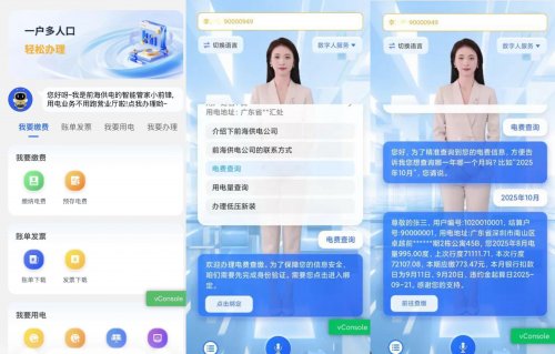 為進一步打破時空壁壘、滿足客戶全天候辦電需求,雙方同步完成前海供電微信公眾號的全方位智能化升級,實現(xiàn)線上線下服務同質(zhì)同效、功能一體貫通。該公眾號搭載的數(shù)字人智能服務,涵蓋多語種自動切換、傳統(tǒng)服務與人工服務靈活切換、身份證識別、人臉識別、電費賬單及電子發(fā)票推送打印、電費查詢繳納、業(yè)務表單確認、服務滿意度調(diào)查等全維度辦電功能,與線下智慧營業(yè)廳的服務能力完全一致。用戶可在數(shù)字人的智能協(xié)助下明確業(yè)務辦理類型,通過引導式交互完成信息采集與資料上傳,全程線上操作、足不出戶即可高效辦結(jié)各類業(yè)務申請,享受到與線下辦理無差別的便捷服務體驗。