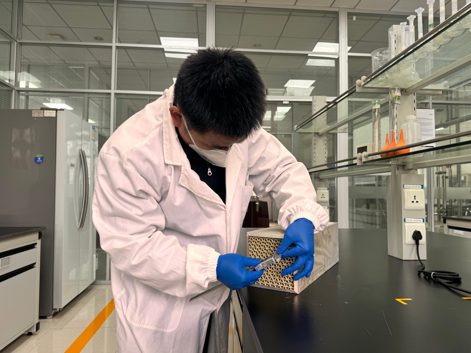 圖為科研人員進(jìn)行波紋板式脫硝催化劑測(cè)量。