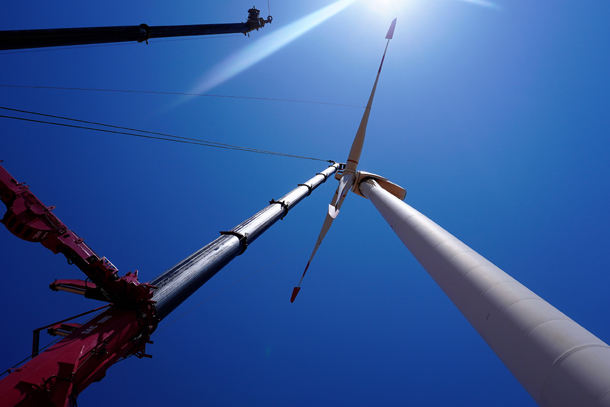 圖為龍源電力對風(fēng)機(jī)部件進(jìn)行拆除回收利用