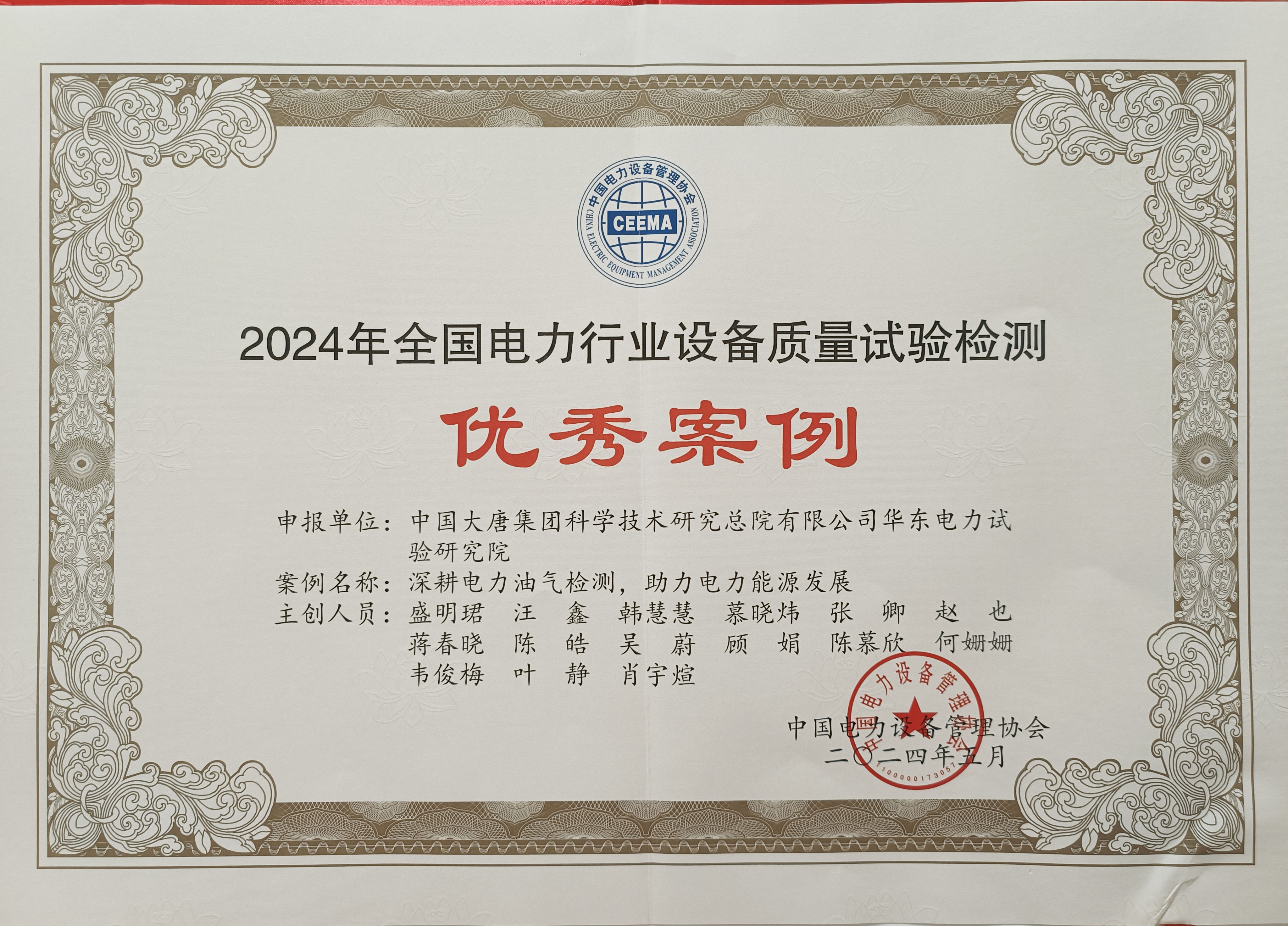中國(guó)能源新聞網(wǎng)訊(韓慧慧)近日,從中國(guó)電力設(shè)備管理協(xié)會(huì)傳來喜訊,大唐華東電力試驗(yàn)研究院申報(bào)的“深耕電力油氣檢測(cè) 助力電力能源發(fā)展”經(jīng)專家組初評(píng)、總評(píng)兩輪評(píng)審,獲評(píng)中國(guó)電力設(shè)備管理協(xié)會(huì)2024年全國(guó)電力行業(yè)設(shè)備質(zhì)量試驗(yàn)檢測(cè)優(yōu)秀案例。