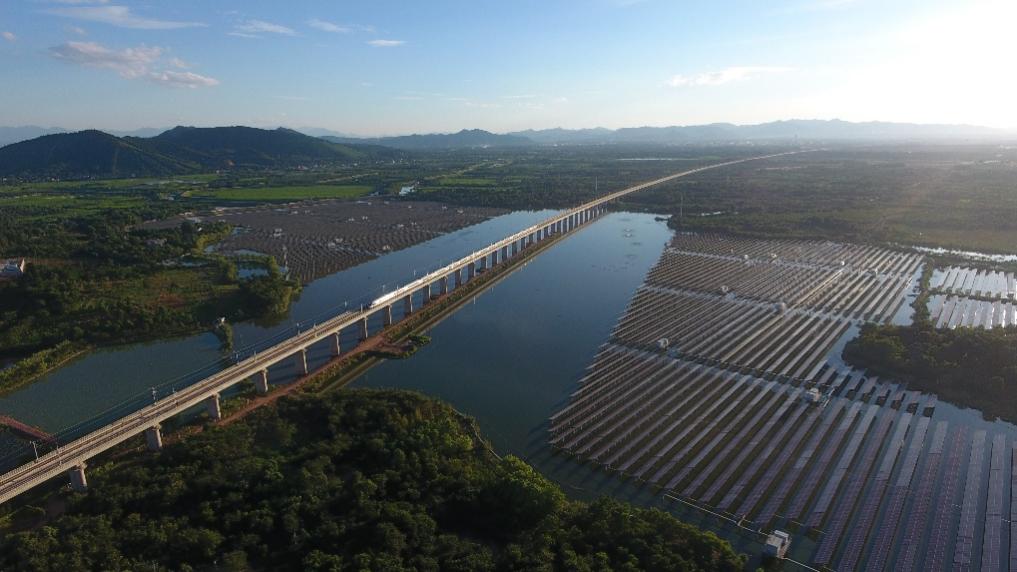 長(zhǎng)興鑫江礦2.1兆瓦礦山治理光伏發(fā)電項(xiàng)目位于長(zhǎng)興縣和平鎮(zhèn)霅溪村廢棄礦區(qū),占地100余畝,是國(guó)家電投在浙江的首個(gè)能源生態(tài)融合發(fā)展項(xiàng)目,實(shí)現(xiàn)了對(duì)采礦沉陷區(qū)和廢棄礦山的生態(tài)修復(fù),通過(guò)與當(dāng)?shù)卮寮w度電分成的方式,探索“共同富?!毙侣窂?/span>。