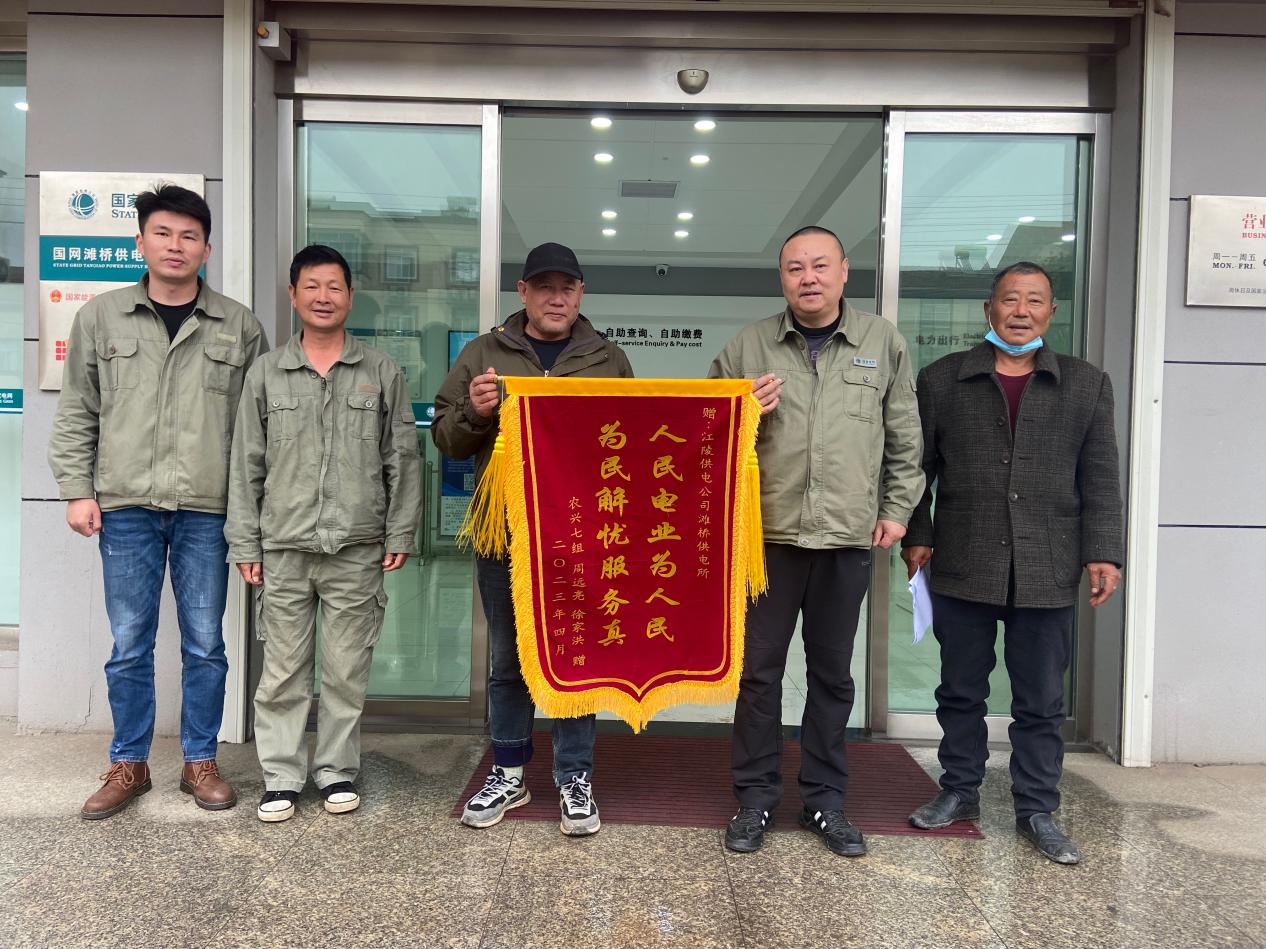 今年4月,灘橋鎮(zhèn)農(nóng)興七組用戶周遠(yuǎn)望一行將一面印有“人民電業(yè)為人民,為民解憂服務(wù)真”的錦旗送到鄭超面前,感謝灘橋所為其解決多年漁場抽水低電壓的問題。