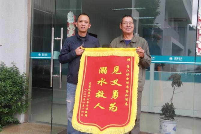 10月25日,一名身著黑衣的男子風(fēng)風(fēng)火火來到國網(wǎng)浙江樂清市供電局清江供電所,點名要找卓賽和。同事們好奇,這名男子是找卓師傅有什么事時?男子打開了一面錦旗,上面寫著“溺水救人、見義勇為”8個字。這時,同事們才驚訝地得知,卓賽和等同事幾天前的救人事跡。