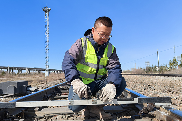 根據(jù)多年的巡檢經(jīng)驗,他們打開轉(zhuǎn)轍機(jī),對松動鋼軌拉桿螺絲進(jìn)行間隙調(diào)整。為了操作方便,楊武龍摘下手套,麻利地挑出匹配的安全裝置安裝到設(shè)備上,又把箱盒里的螺絲依次檢查一遍,才把箱盒蓋好鎖好。短短5分鐘,他的雙手被風(fēng)吹得通紅。30分鐘后,“嘩、啪”,岔尖密貼到位,道岔恢復(fù)了正常,大家懸著的心終于放了下來。