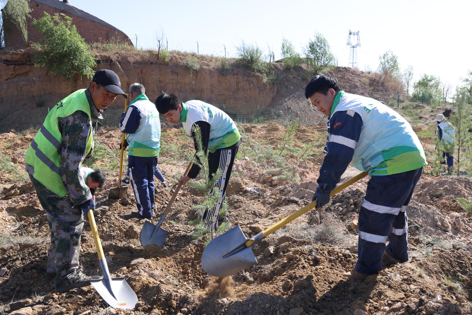 大柳塔煤礦職工開展義務(wù)植樹活動。