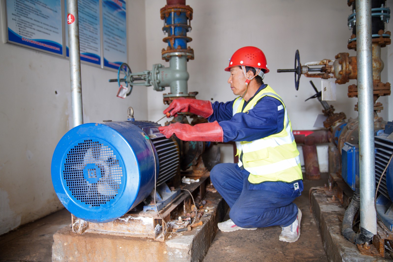 賈新平正在啟動水泵澆灌山上植被。
