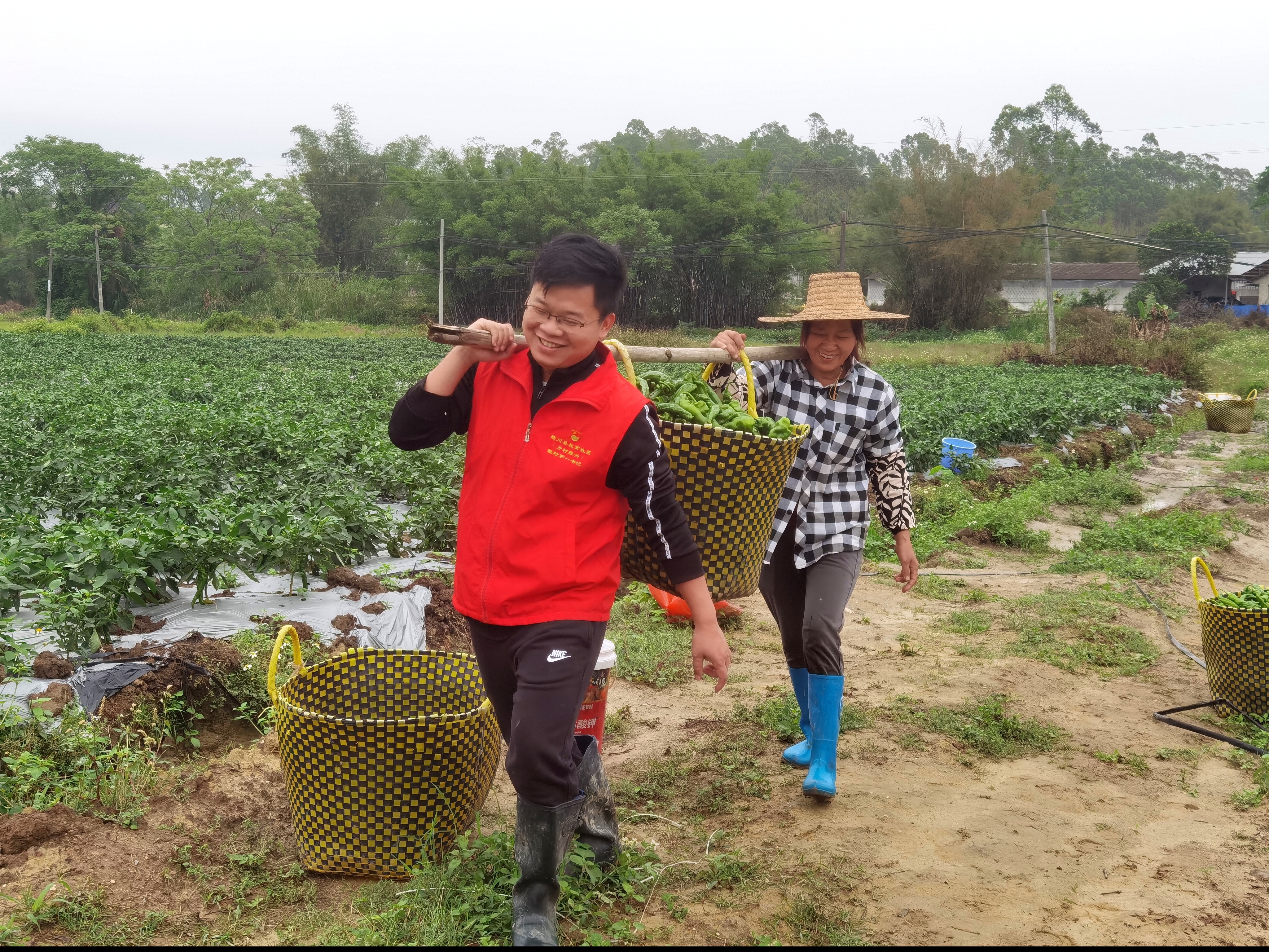 2024年3月8日,駐村第一書記呂漢坤帶領村干部到基地協(xié)助辣椒采摘出貨。林鋒 攝