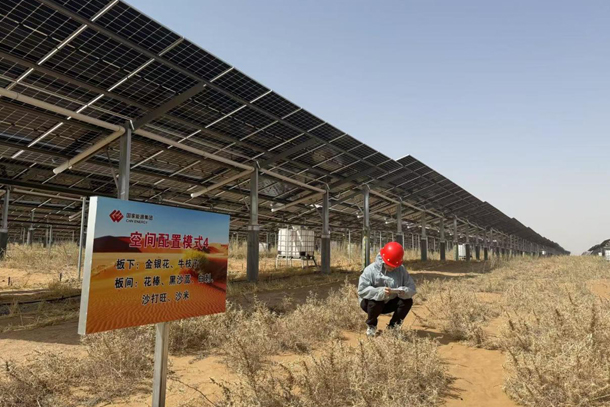 創(chuàng)新的腳步?jīng)]有因為已有的成績而停止。2024年,龍源電力在中衛(wèi)建成光伏治沙實證基地,設置土壤改良區(qū)、集水節(jié)水區(qū)、生物土壤結(jié)皮區(qū)等不同配置模式,開展防沙治沙效果的持續(xù)監(jiān)測工作,旨在形成一套沙漠光伏電站的阻沙、防沙、固沙和用沙的綜合防護技術。彼時,看著被完美地安裝在光伏板下閃爍著銀光的集水槽,楊奕穎努力讓自己忽略干燥的天氣,想象光伏板上滑落雨滴的美好景象。而今,這一設想已經(jīng)成真!