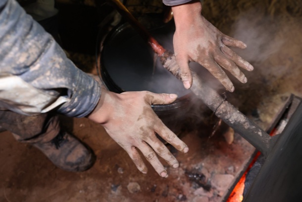紅薯滾燙,筆者在兩手間來回倒騰散熱。曹少飛卻利落地剝開外皮,咬了一大口,鼓著腮幫子解釋:“數(shù)九寒冬施工,對我們鉆探人來說是家常便飯,但最大的難題是防凍。水管一結(jié)冰,鉆機(jī)就斷了‘血脈’——水對鉆機(jī),就像血液對人一樣重要,沒水根本轉(zhuǎn)不起來。所以我們得時(shí)不時(shí)給泵體烤火、給膠管裹上保溫層,一刻不敢松懈,才能保證管路正常供水?!?/p>