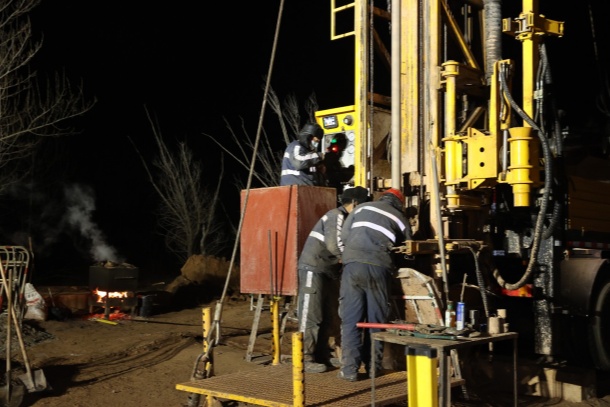 1月25日傍晚7點(diǎn),在距離中心礦區(qū)22公里外的補(bǔ)連塔煤礦12煤五、六盤區(qū)異常區(qū)補(bǔ)勘工程施工現(xiàn)場,國家能源集團(tuán)神東煤炭地測公司(簡稱“神東煤炭地測公司”)勘探隊(duì)地面三組鉆探工曹少飛正半跪在冰冷的土地上,俯身查看泥漿泵工作情況。他的手套沾滿油污,呼出的白氣在寒風(fēng)中迅速消散。