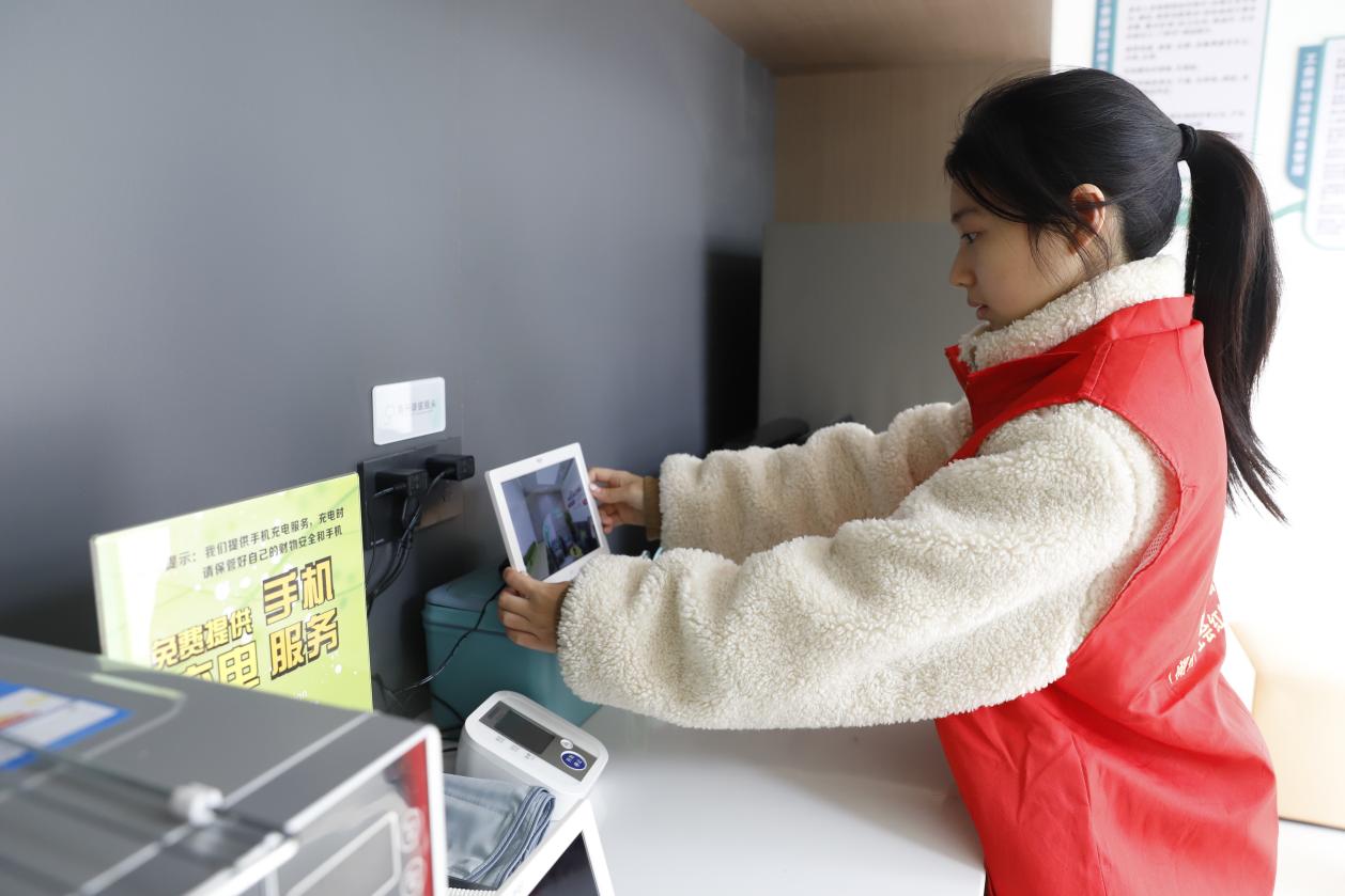 揭牌當(dāng)天,驛站便迎來了第一位客人——環(huán)衛(wèi)工人李叔叔。清晨打掃完片區(qū)后,他雙手凍得發(fā)紅,推門進(jìn)來接了杯熱水,又在充電區(qū)給手機(jī)充上電?!耙郧岸熘荒苷驹谖蓍芟露愣泔L(fēng),現(xiàn)在能進(jìn)來坐著喝口熱的,渾身都暖和了?!崩钍迨逍χf道。短短半小時,又有兩位外賣騎手進(jìn)來用微波爐加熱,一邊吃飯一邊給電瓶車頭盔里的藍(lán)牙耳機(jī)充電。