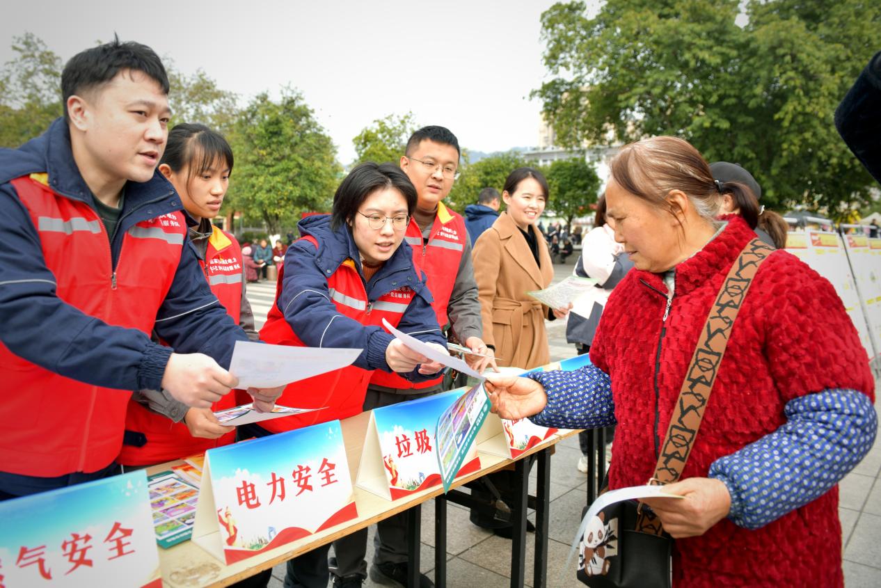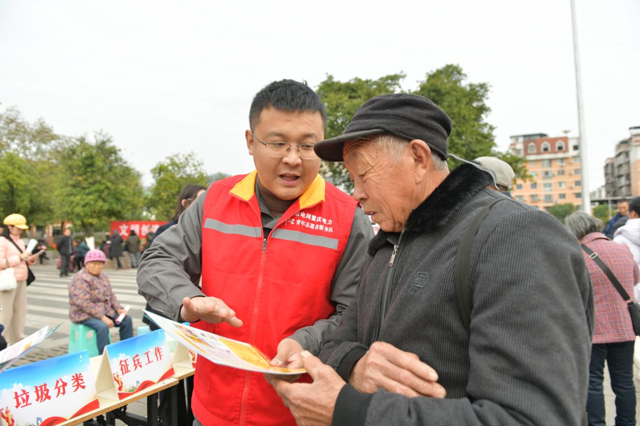 活動(dòng)現(xiàn)場(chǎng),龍都街道通過(guò)文藝表演、互動(dòng)游戲、民俗體驗(yàn)等形式,傳遞節(jié)日溫馨。而在廣場(chǎng)一側(cè),國(guó)網(wǎng)重慶萬(wàn)州供電公司(簡(jiǎn)稱“國(guó)網(wǎng)萬(wàn)州供電公司”)設(shè)置的“安全用電宣傳站”同樣氣氛熱烈。志愿者們一邊發(fā)放《家庭安全用電指南》《冬季用電注意事項(xiàng)》等實(shí)用宣傳資料,一邊結(jié)合漫畫(huà)為群眾講解節(jié)假日期間常見(jiàn)用電隱患及預(yù)防措施。