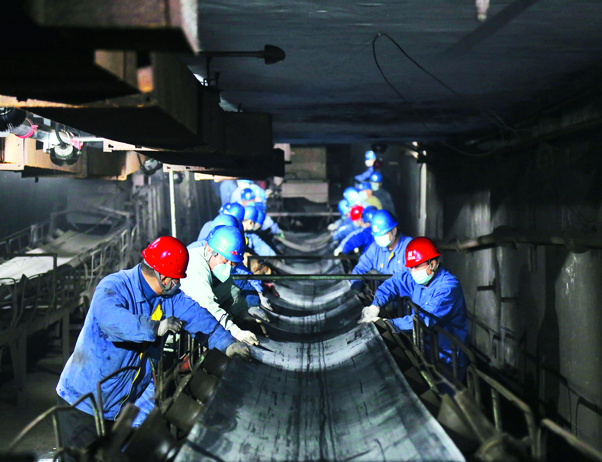 華能北方興安熱電公司檢修部黨員干部合力攻堅,完成輸煤棧橋皮帶更換任務(wù)。陳瑋 攝