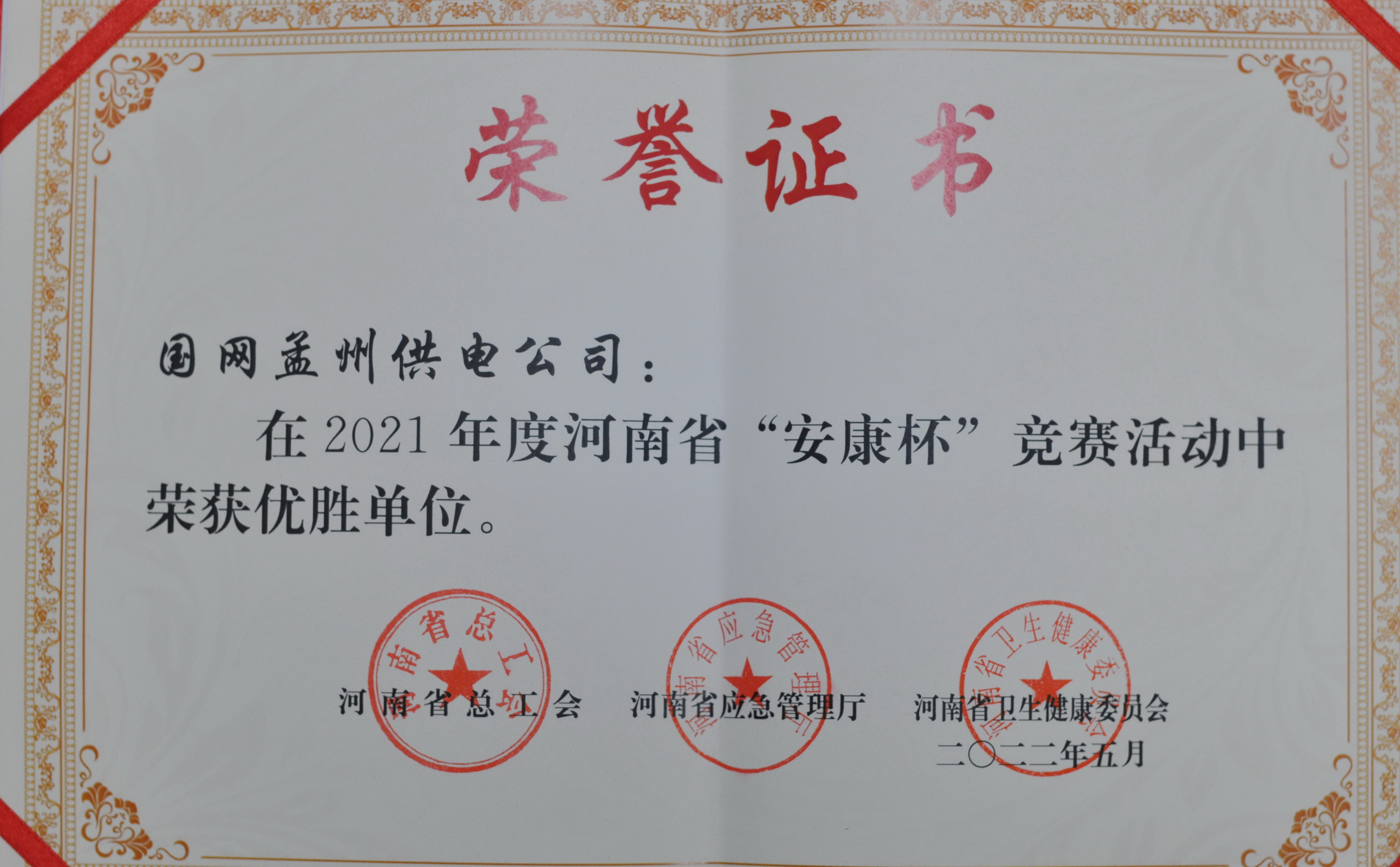 孟州市供電公司:榮獲河南省“安康杯”競賽優(yōu)勝單位