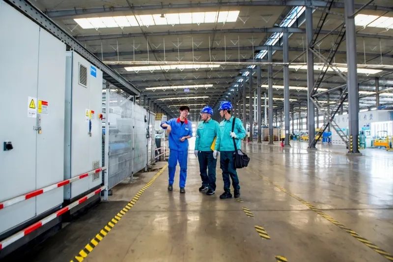 ▲國網(wǎng)福建石獅市供電公司員工到新材料公司服務(wù)企業(yè)生產(chǎn)用電
