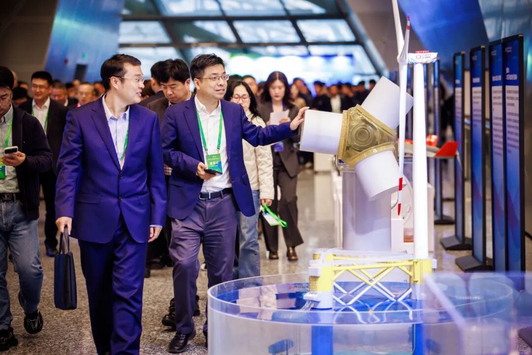 ▲ 2025海上風(fēng)電現(xiàn)代產(chǎn)業(yè)鏈共鏈行動(dòng)大會(huì)期間,與會(huì)人員在會(huì)場(chǎng)外的展臺(tái)前駐足參觀,大會(huì)展出的28件展品均代表了我國(guó)新能源產(chǎn)業(yè)領(lǐng)域最新技術(shù)成果。