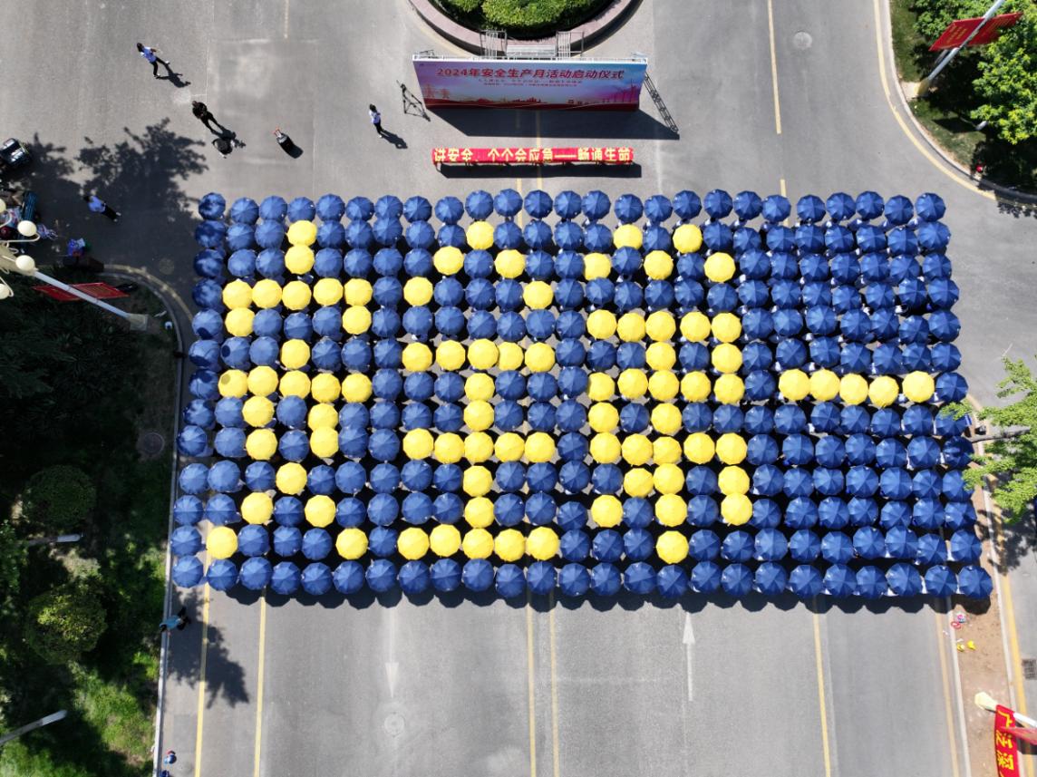 由活動(dòng)現(xiàn)場(chǎng)干部、職工組成的安全方陣,用“安全傘”撐出“安全第一”的圖案,場(chǎng)面壯觀(guān)、震撼。最后,干部、職工在“人人講安全、個(gè)個(gè)會(huì)應(yīng)急——暢通生命通道”的橫幅上鄭重承諾簽名。