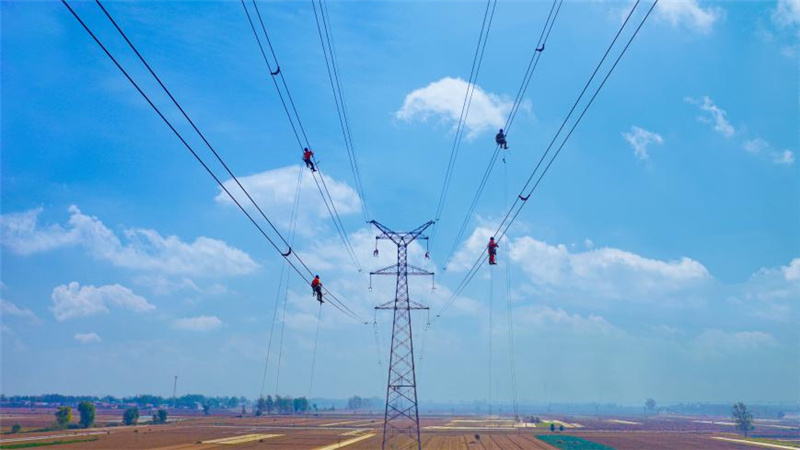 10月31日,在山東省臨沂市溫水鎮(zhèn),國網(wǎng)臨沂供電公司在220千伏蒙溫線開展防舞動間隔棒安裝工作。兩位高空作業(yè)人員默契配合,將間隔棒快速安裝在220千伏蒙溫線B相和C相之間。該公司結(jié)合秋檢工作對剩余44條輸電線路開展抗冰防舞動改造,做好35條穿越林區(qū)輸配電線路巡視消缺,按期投產(chǎn)18項電網(wǎng)補強工程,從源頭提升電網(wǎng)抵御自然災(zāi)害能力,夯實電網(wǎng)保供基礎(chǔ)。