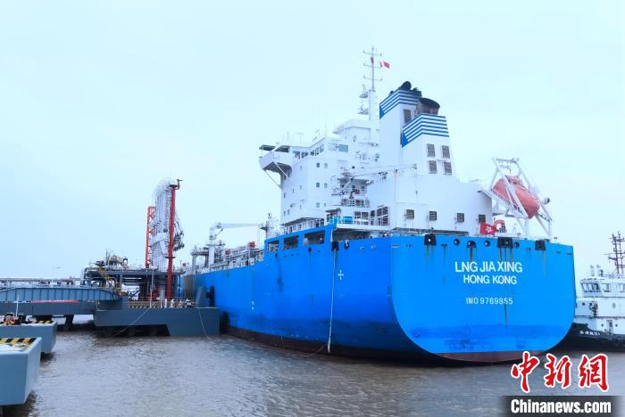 裝載著1.96萬噸進(jìn)口液化天然氣(LNG)貨輪“LNGJIAXING”順利靠泊嘉興港獨(dú)山港區(qū)碼頭。嘉興海關(guān)供圖