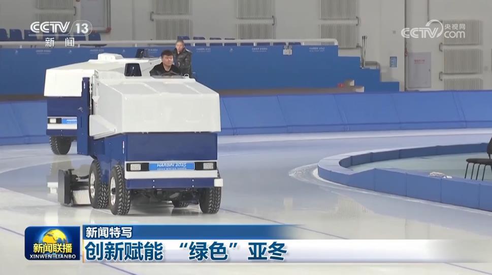 在本屆亞冬會(huì)冰上項(xiàng)目場(chǎng)館,不同于以往的燃油澆冰車,環(huán)保、節(jié)能又高效的新型電動(dòng)澆冰車投入使用,在場(chǎng)館里穿梭忙碌。
